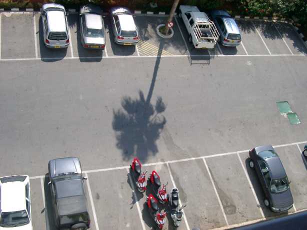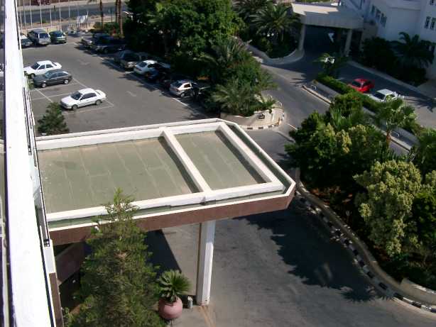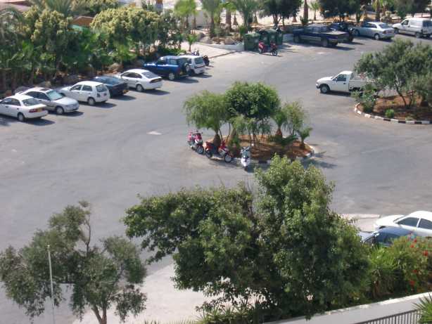 und den hotelparkplatz gesehen